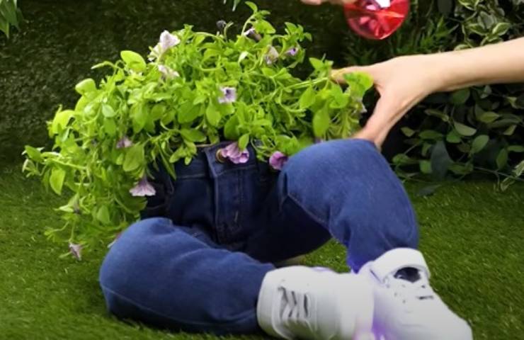 Fioriera alternativa per il giardino: ti spieghiamo come crearne una molto scenografica utilizzando dei vecchi jeans. Sarà bellissima