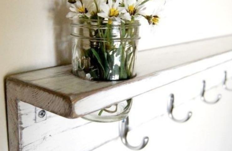 Portafiori pensili (fonte dicasdecoracao.com – Pinterest) - Portafiori. Anche i fiori sono addobbi che non mancano mai in una casa cosiffatta. Lo stesso barattolo di vetro può essere usato come portafiori ma non solo. Se volete dare ancora più sfogo alla vostra originalità, potete legare i barattoli a delle tavole di legno pensili. Il risultato sarà stupefacente.