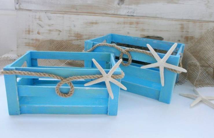 - Cassette porta fiori. Per un tocco di stile anche in giardino, potete utilizzare delle cassette di frutta in legno e ridipingerle. Scegliendo i colori adatti e abbellendo con nastrini e spago, la cassetta metterà in mostra i vostri fiori con stile.
