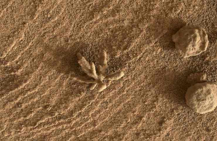 Le immagini mostrano il fiore di 1 centimetro, purtroppo non vivo, immortalato lo scorso 25 febbraio in prossimità del cratere Gale largo. I ricercatori lo descrivono come una forma strana, raffigurante una sorta di corallo o, addirittura, una spugna marziana.
