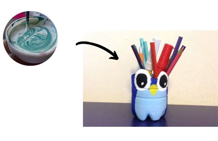 Uno dei modi che più ha attirato la nostra attenzione è la realizzazione di un bellissimo portapenne, partendo semplicemente da una bottiglia di plastica. Ci serviranno i seguenti ingredienti: