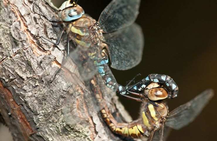 È il caso delle libellule femmine del genere Aeshna juncea, le quali si fingono morte per un motivo preciso. Applicano la cosiddetta tanatosi, una simulazione di morte adottata anche da altre specie, solitamente per sfuggire al predatore. In pratica, l’animale si finge morto, pur di essere lasciato in pace. Ma se gli altri animali fingono di morire per una questione di sopravvivenza, di fronte al nemico, le libellule femmine sfruttano tale escamotage per un’altra questione.