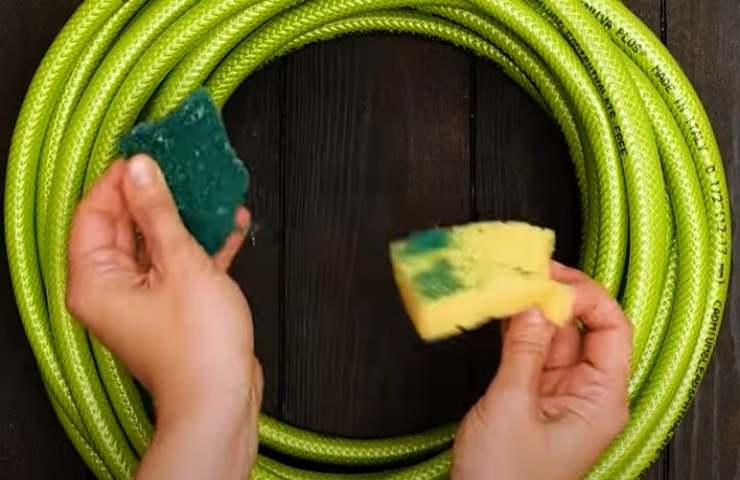 Come pulire all’interno il tubo in gomma per innaffiare il giardino? Ti basta una spugnetta per i piatti: ecco come fare