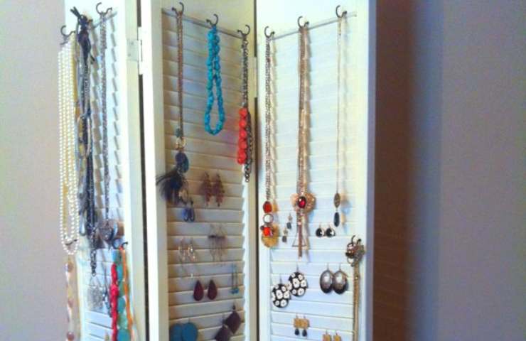 Persiana porta gioielli (fonte Pinterest) - Porta gioielli. Se avete appena cambiato le finestre in casa, non buttate le vecchie persiane in legno. Che vogliate ridipingerle o lasciarle come sono, possono diventare dei favolosi porta gioielli dove appendere i vostri orecchini.