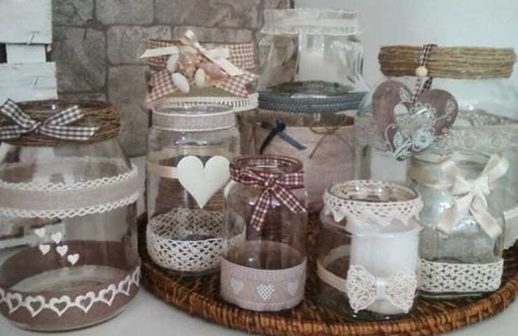 Porta candele in vetro (fonte loshabbydimila.blogspot.it – Pinterest) - Portacandele. In una casa romantica le candele non possono mai mancare. Prendendo alcuni barattoli di vetro e abbellendoli con spago o nastrini, riuscirete a ricreare dei favolosi portacandela.