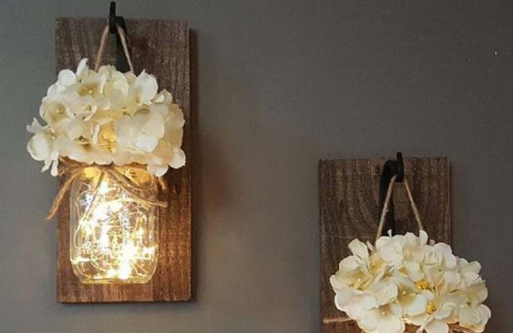 Portafiori pensili (fonte dicasdecoracao.com – Pinterest) - Portafiori. Anche i fiori sono addobbi che non mancano mai in una casa cosiffatta. Lo stesso barattolo di vetro può essere usato come portafiori ma non solo. Se volete dare ancora più sfogo alla vostra originalità, potete legare i barattoli a delle tavole di legno pensili. Il risultato sarà stupefacente.
