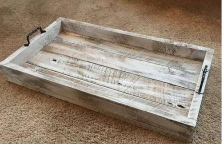 Vassoio shabby chic (fonte Pinterest) - Vassoio. Un’idea semplice ma assolutamente in linea con lo stile, è quella di ricreare un vassoio. Aggiungendo due semplici maniglie ad una tavola di legno appena ridipinta, potrete servire il vostro caffè con stile.