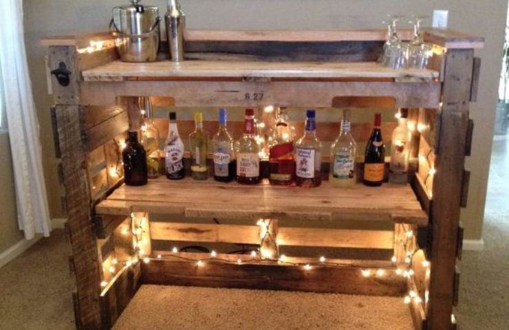 Angolo bar fai da te (fonte livemaster.ru – Pinterest) - Angolo bar: un’idea particolare, adatta a case di campagna e abitazioni, è l’angolo bar. Posizionando un bancale in verticale e dipingendolo con i colori che più ti piacciono, sarà l’angolo del relax e chiacchiere insieme ad amici e parenti;