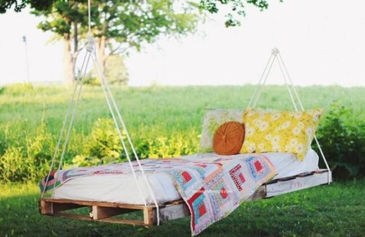 Letto a dondolo fai da te (fonte spaceshipsandlaserbeams.com – Pinterest) - Letto a dondolo: se avete una casa in campagna e vi piacerebbe realizzare un dondolo, vi servirà un bancale grande e delle corde. Anche in questo caso, cuscini e coperte, renderanno tutto più originale;