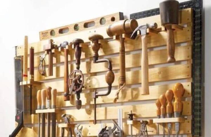 Parete attrezzi fai da te (fonte vivadecora.com.br – Pinterest) - Parete degli attrezzi: i lavori da fare in casa non mancano mai e gli strumenti necessari a svolgerli sono molti. Per tenerli in ordine e sempre nello stesso posto, un bancale può diventare una parete attrezzata dove sistemare tutto. Adatta a garage o magazzini.