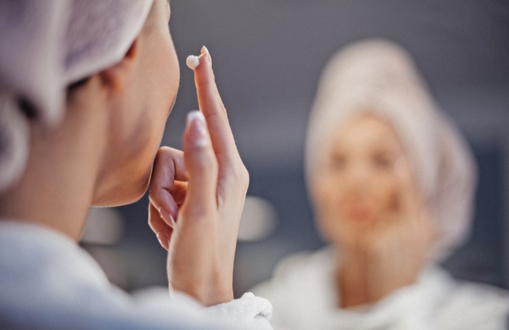 - Trascorso il tempo di posa indicato rimuovi la crema con abbondante acqua tiepida e asciuga il viso tamponando con delicatezza.