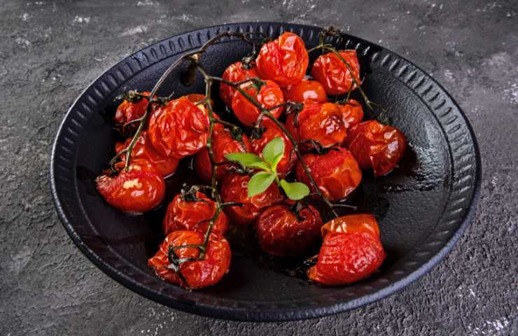 - Successivamente trasferisci i pomodorini in una teglia rivestita di carta forno e cuocili in forno preriscaldato per circa 40 minuti a 150 gradi.